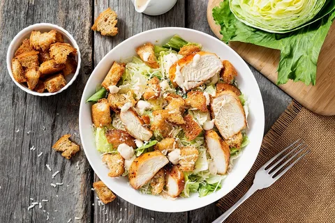 Crisp Romaine leaves tossed in a silky Parmesan-anchored dressing, finished with garlic-crouton crisps and a whisper of freshly cracked black pepper