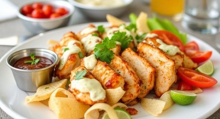 Tender, marinated chicken shawarma served with aromatic saffron rice, crisp veggies, and a creamy garlic sauce for a satisfying, flavorful meal.