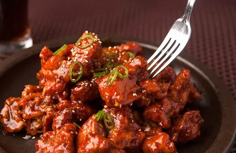 Crispy chicken tossed in a tangy, spicy Indo-Chinese sauce with bell peppers,