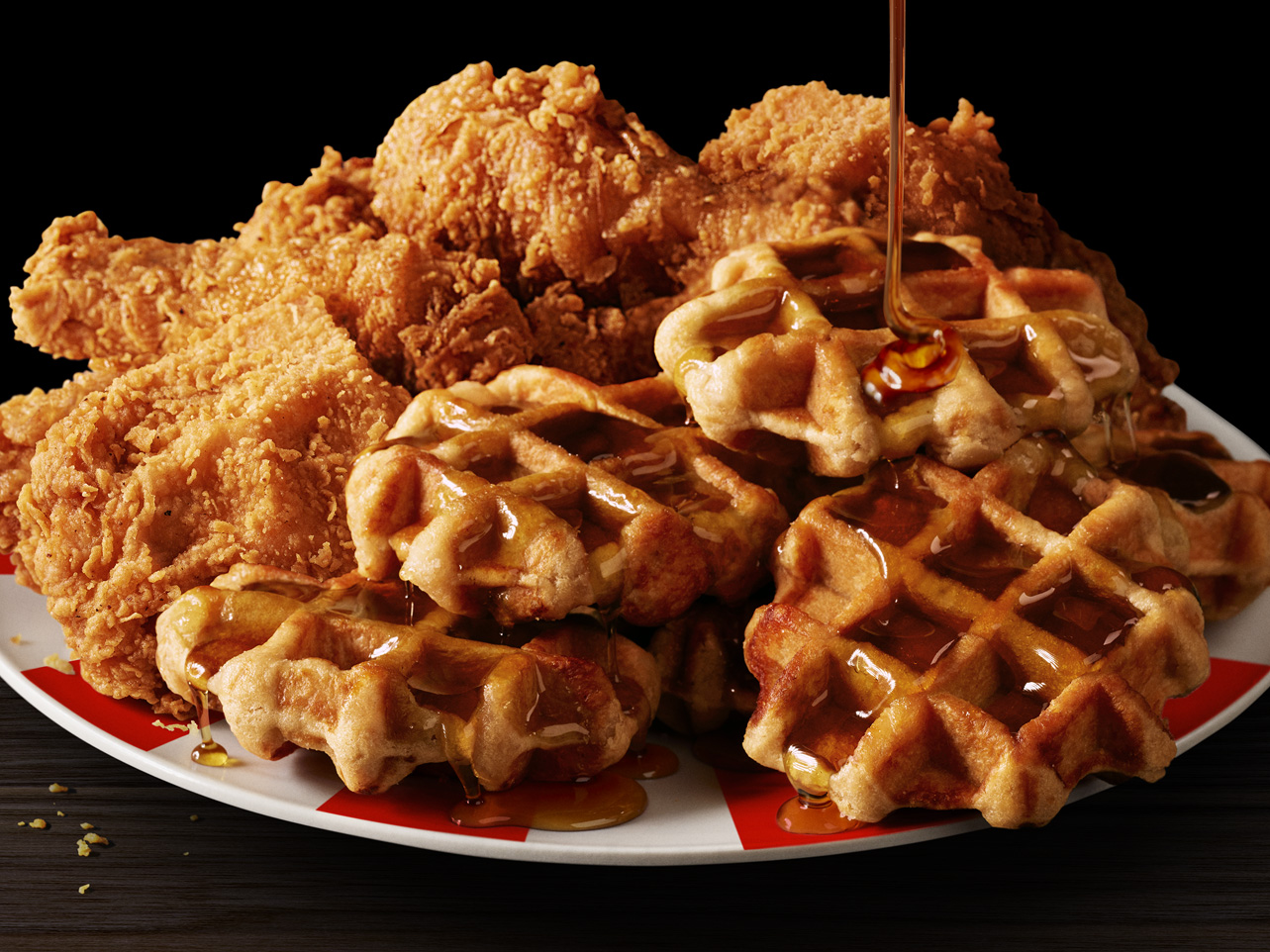 Crispy Fried Chicken Tenders , sriracha hollandaise , with choice of fruits or hash browns