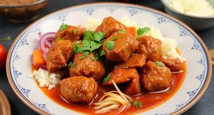Tender lamb simmered in a rich, aromatic blend of spices, tomatoes, and yogurt, creating a deeply flavorful curry that’s both savory and satisfying