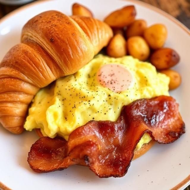 Scrambled Eggs, Apple Wood Smoked Bacon With Our Award Winning Croissant, Jam And Butter. Served With Breakfast Potatoes