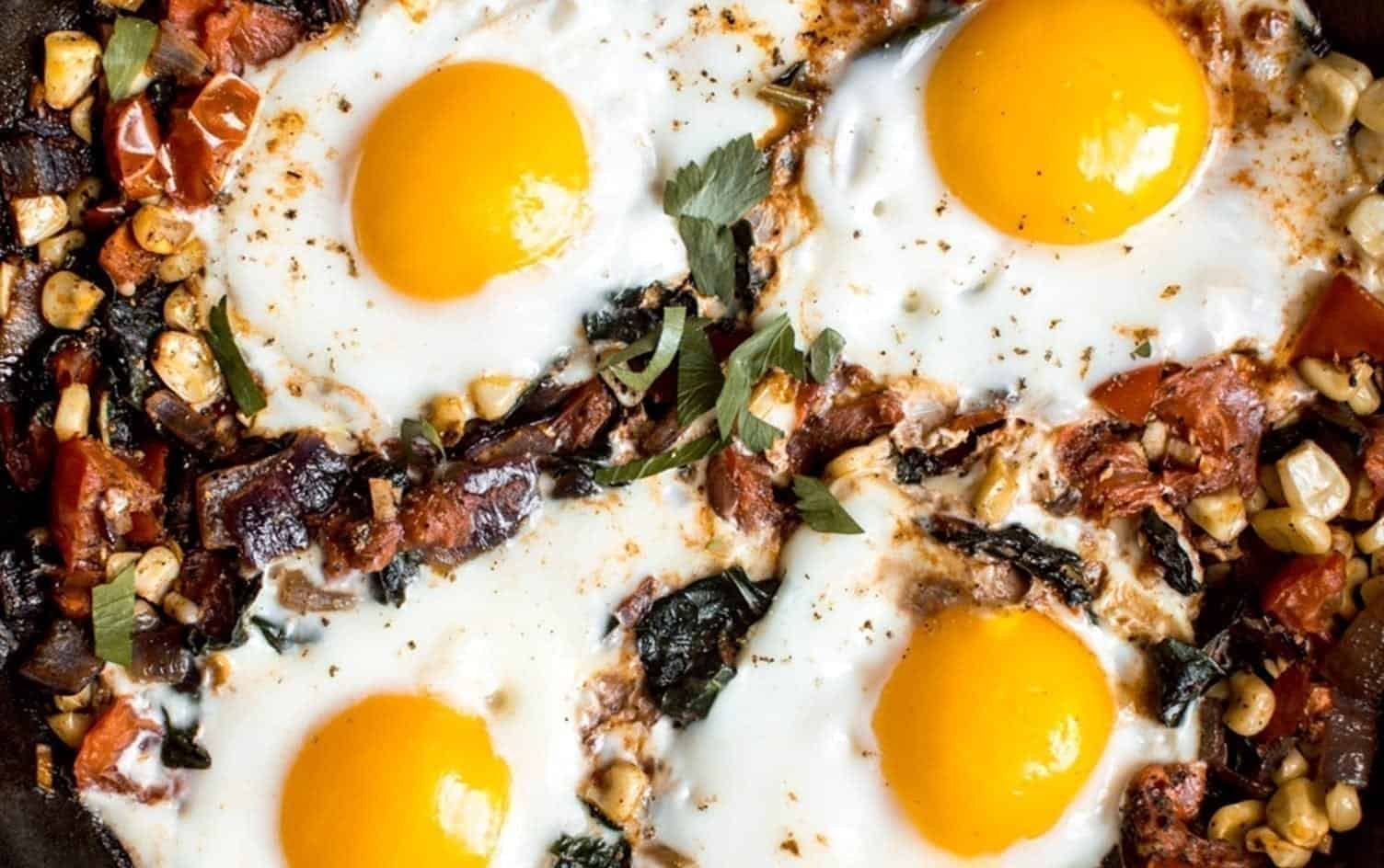 cage-free eggs cooked any style and 1 slice of toast. Includes hash browns, fruit, and choice of milk or juice