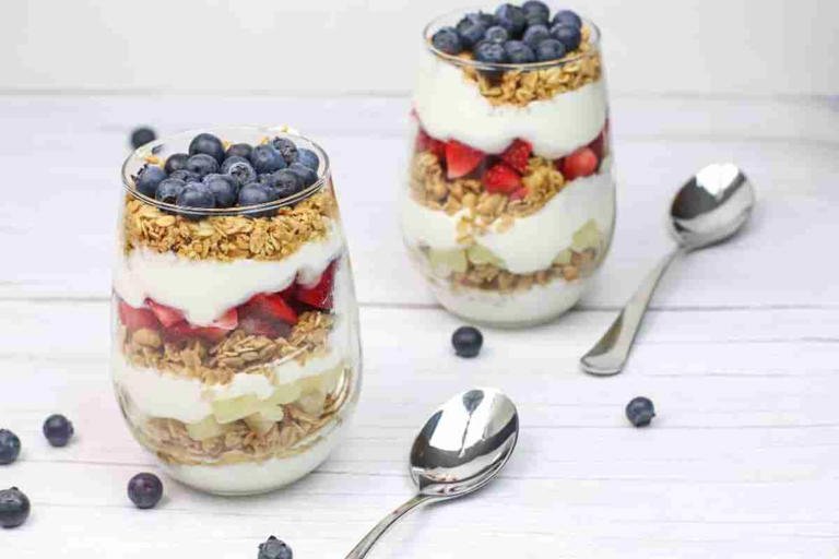 Vegetarian, gluten-free. Fresh assorted berries, homemade granola, honey greek yogurt