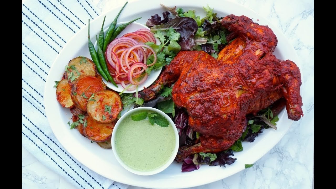 Classic bone-in chicken roasted in a tandoor with Indian spices