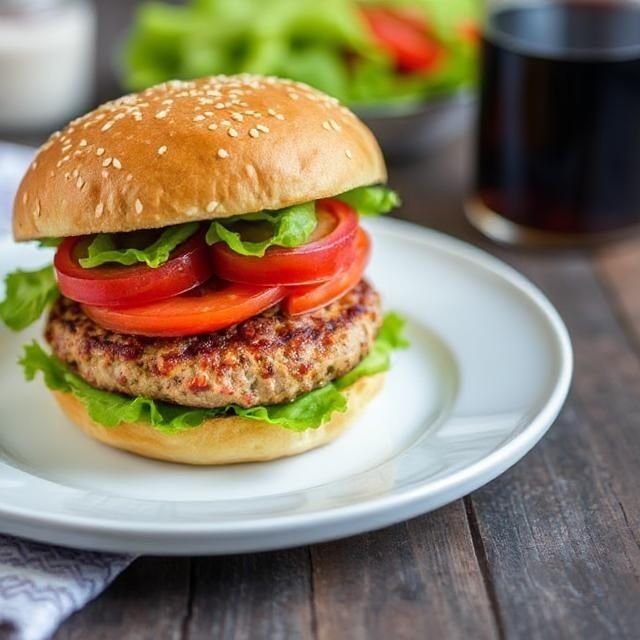 Juicy seasoned turkey patty grilled to perfection, served with fresh toppings on a toasted bun. Severed with House fries